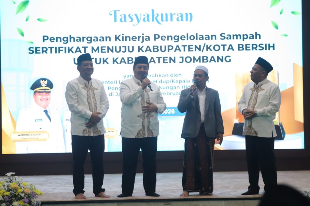 Kabupaten Jombang berhasil menempati peringkat ke-16 terbaik nasional dari 35 daerah penerima sertifikat penghargaan menuju Kota/Kabupaten Bersih dengan nilai capaian 65,47 persen. Penilaian dilakukan berdasarkan performa sistem pengelolaan sampah, kebijakan anggaran, serta kesiapan infrastruktur sepanjang 2025.