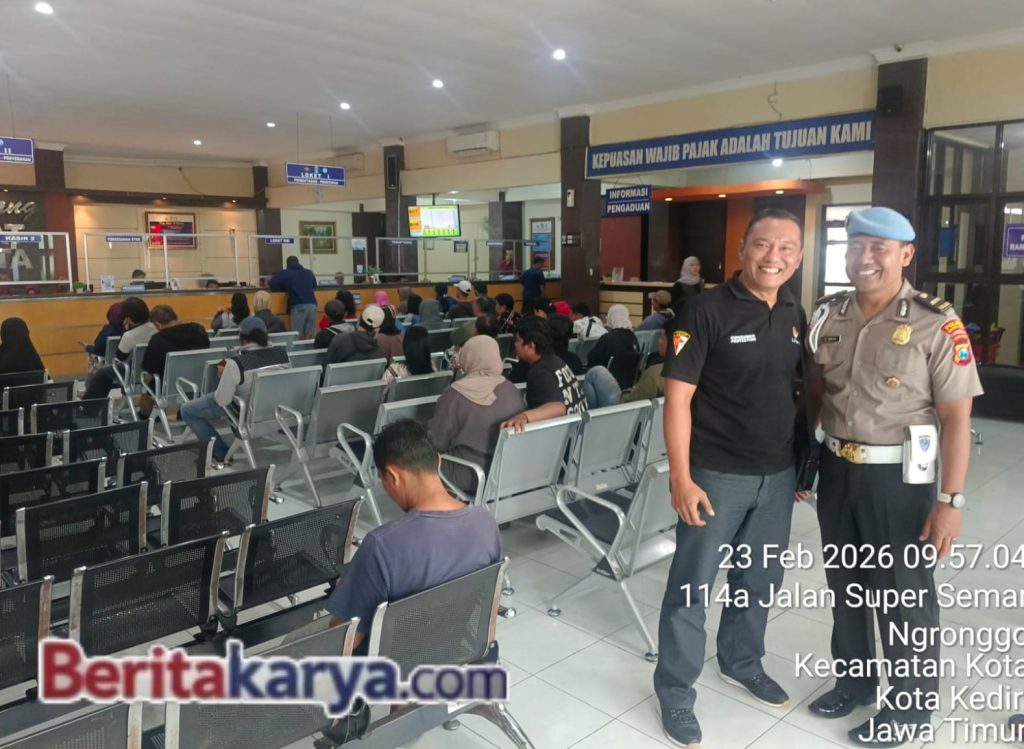 KEDIRI I Beritakarya.com – Peningkatan kualitas layanan di Samsat Kota Kediri mendapat apresiasi dari LPK-RI DPC Kediri. Penilaian tersebut disampaikan setelah dilakukan pemantauan langsung terhadap sistem pelayanan dan interaksi petugas dengan masyarakat.